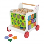 Šest dílků vkládačky, postranní bludiště a otáčivé kostky pomáhají dětem poznávat tvary a barvy, trénovat koordinaci oko–ruka a logické myšlení.