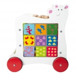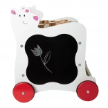 Multifunkční dřevěné chodítko s motivem ledního medvěda nabídne dětem oporu při prvních krůčcích i spoustu zábavy. Rozvíjí hrubou i jemnou motoriku, rozpoznávání tvarů a barev a podporuje kreativitu při kreslení křídou. Stabilní konstrukce, pogumovaná kolečka pro tichý chod a praktický úložný prostor dělají z chodítka skvělého parťáka do každého dětského pokojíčku.