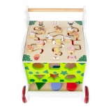 Objevujte svět krůček po krůčku. Toto odolné chodítko z kombinace překližky a masivního dřeva pomáhá dětem bezpečně trénovat rovnováhu a koordinaci, zatímco integrované aktivity – vkládačka se 6 dílky, bludiště a otáčivé kostky – posilují zrakové vnímání i logické myšlení. Tabulka pro kreslení křídou přidává kreativní rozměr učení a hry.