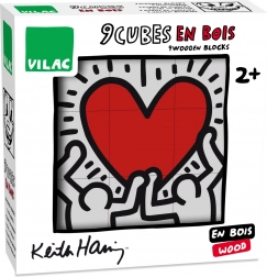 Klasická sada dřevěných kostek značky Vilac, zdobená ikonickými ilustracemi amerického umělce Keitha Haringa, kombinuje umění s hrou. Skládejte a vytvářejte obrazy, které oživí každý prostor svými výraznými barvami a liniemi.