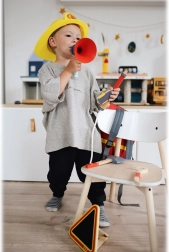 Součástí sady je dřevěná „hadice“ a stříkačka, se kterou děti snadno „uhasí“ každý plamínek. Podporuje fantazii a rozvoj jemné motoriky.