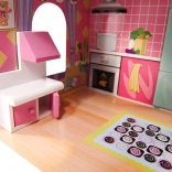 Pečlivě obroušené díly zajišťují bezpečnou hru bez třísek. Otevírací dvířka kuchyňských skříněk, houpací kolébka, stůl se židlemi či šatní skříň podněcují fantazii a rozvíjejí jemnou motoriku i sociální dovednosti při společném hraní a stavění.