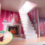 Domeček nabízí tři úrovně s pěti místnostmi, schodišti a balkonky. Barevné potisky stěn a podlah vytvářejí útulnou atmosféru pro fantazijní hru.