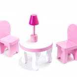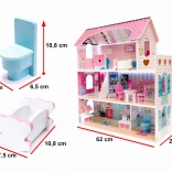 Dřevěný domeček pro panenky 70 cm s LED osvětlením – růžový, MDF, s nábytkem