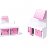 • Bohatá sada 9 kusů nábytku včetně kuchyňské linky se dřezem, stolu, židlí, lampy, skříně, kolébky a toalety.