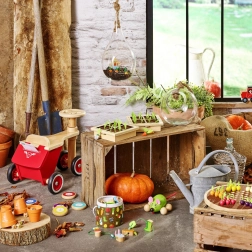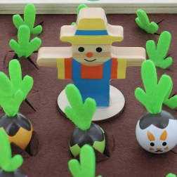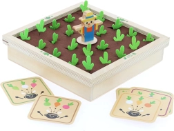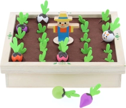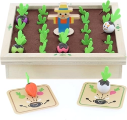 Objevte kouzlo zahrádky u rodinného stolu. Tato krásná dřevěná hra s filcovými prvky přináší barevné zeleninové figurky a receptové kartičky, díky nimž se děti učí rozpoznávat tvary, barvy a logické souvislosti. Hrajte klasické pexeso nebo společně vařte polévku podle receptů – vždy s dávkou napětí, zda se neobjeví nezbedný králík.