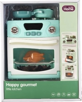 Součástí sady je sporák, trouba, dvě hrnce a pečené kuře pro kompletnější herní zážitek.
