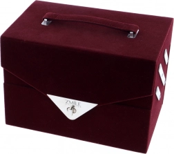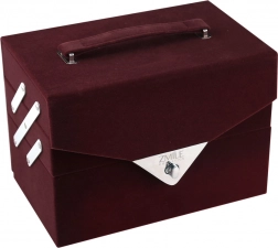 - Sametový kufřík v tmavě vínové barvě s madlem