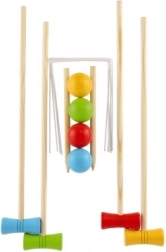 Užijte si veselé odpoledne s dřevěným kroketem, který rozvíjí koordinaci a přesnost. Rozmístěte branky dle přiloženého návodu a pomocí paliček dostaňte míček skrz všechny branky.