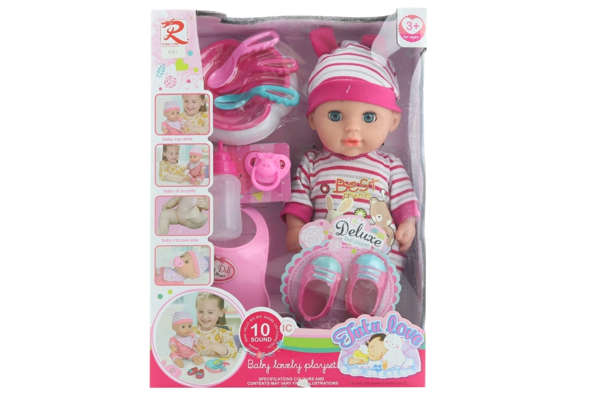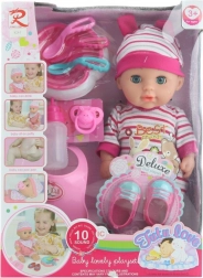 • Bohatá sada doplňků: botičky, bryndáček, lahvička, talířek a další příslušenství.