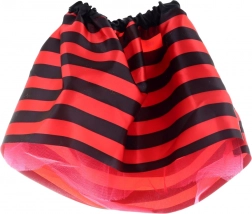 Součástí jsou průsvitná růžovo-červená křídla s třpytivými puntíky, elastická sukně v červeno-černém proužku, čelenka s pružnými tykadly a ladící hůlka se stuhami. Velikost sady je navržena pro děti od 3 let; rozměr balení cca 49 × 57 cm.
