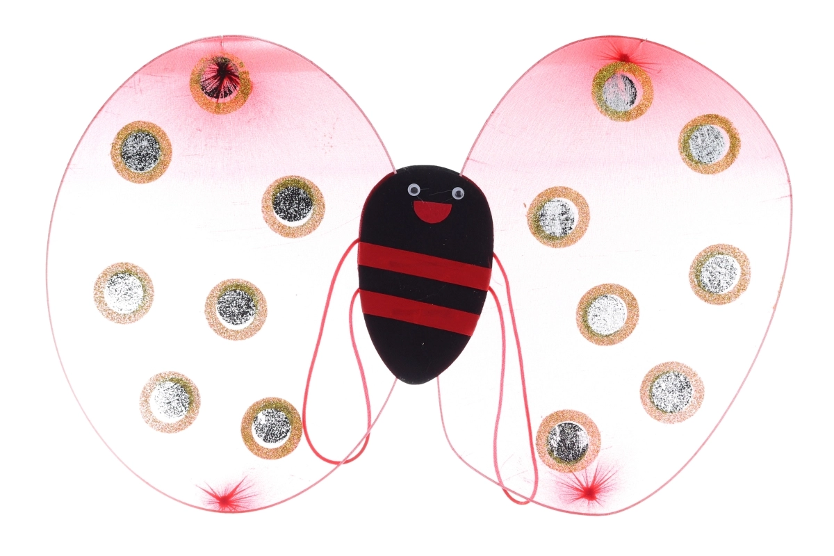Lehká, průsvitná křídla s třpytivými puntíky a elastickými popruhy pro snadné a bezpečné nošení i při delším hraní.