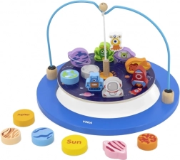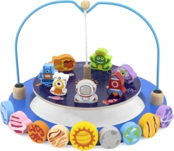 S dřevěnou hrou Balanční hra - Vesmirná zábava se děti ponoří do vesmírného dobrodružství. Tato zábavná a vzdělávací hra obsahuje základnu o rozměrech 26 x 26 x 18 cm, která se podobá kruhu s vesmírnými motivy.