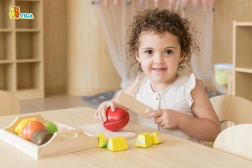 Díky suchému zipu ovoce lze jedním pohybem krájet a znovu spojovat, což podporuje rozvoj jemné motoriky.