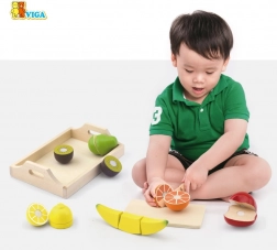 Hračka obsahuje krásně barevné ovoce, které děti snadno zaujme a umožní jim realistickou imitaci kuchyňských činností.