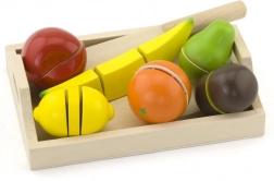 Dřevěné krájecí ovoce s táckem je ideální volbou pro rodiče, kteří chtějí rozvíjet kreativitu a motorické dovednosti svých dětí. Tato hračka zahrnuje různé druhy ovoce, které dítě může krájet a znovu spojit díky suchému zipu. Ovoce je krásně barevně ztvárněné, čímž zaujme pozornost každého dítěte.