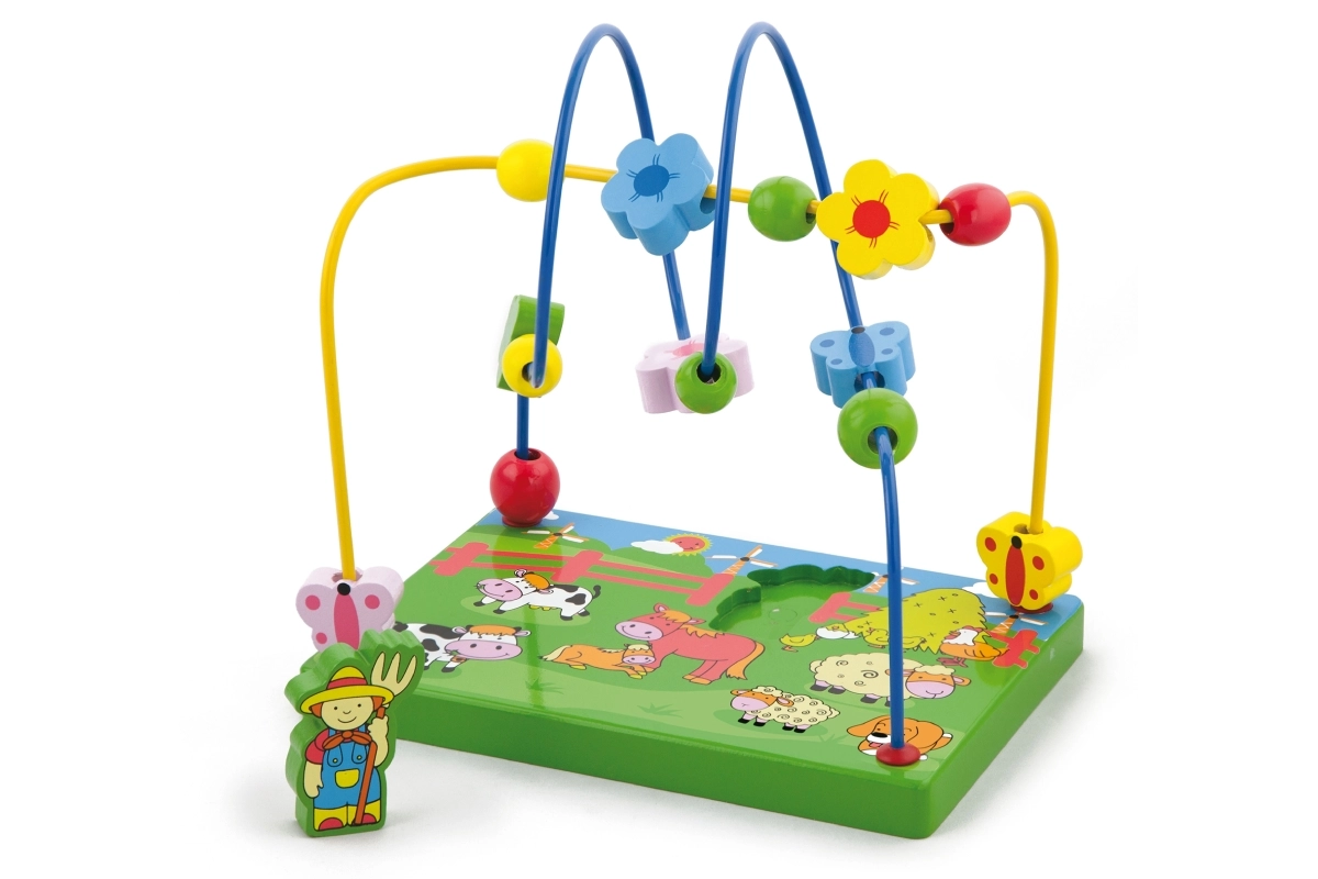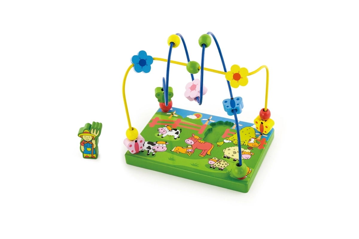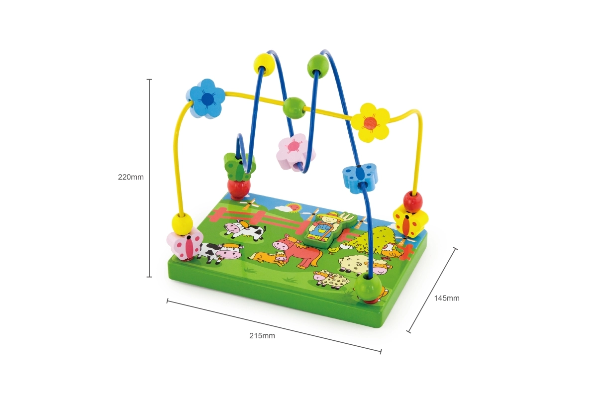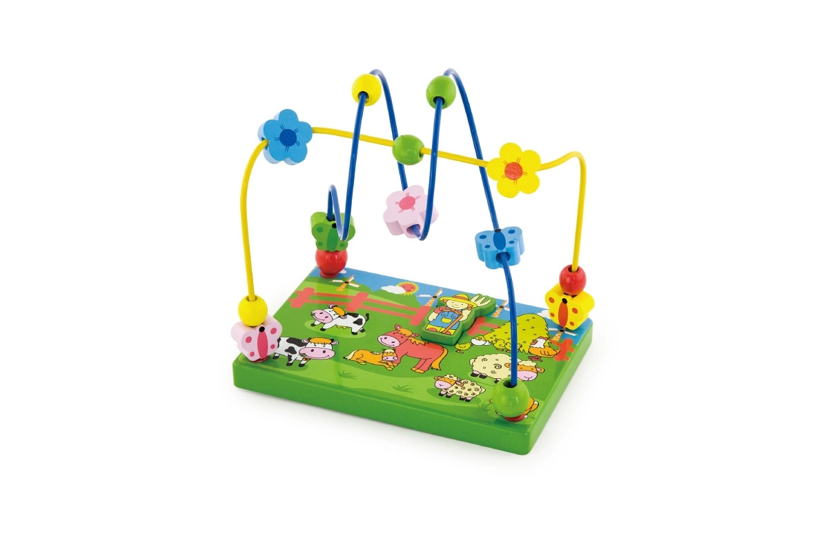 Objevte barevný dřevěný korálkový labyrint s farmářskou tématikou, který děti nadchne pohybem korálků po kovových drátcích i hrou s magnetickou figurkou. Stabilní dřevěná základna s ilustracemi z farmy podporuje představivost a zároveň učí děti soustředit se a koordinovat pohyby.
