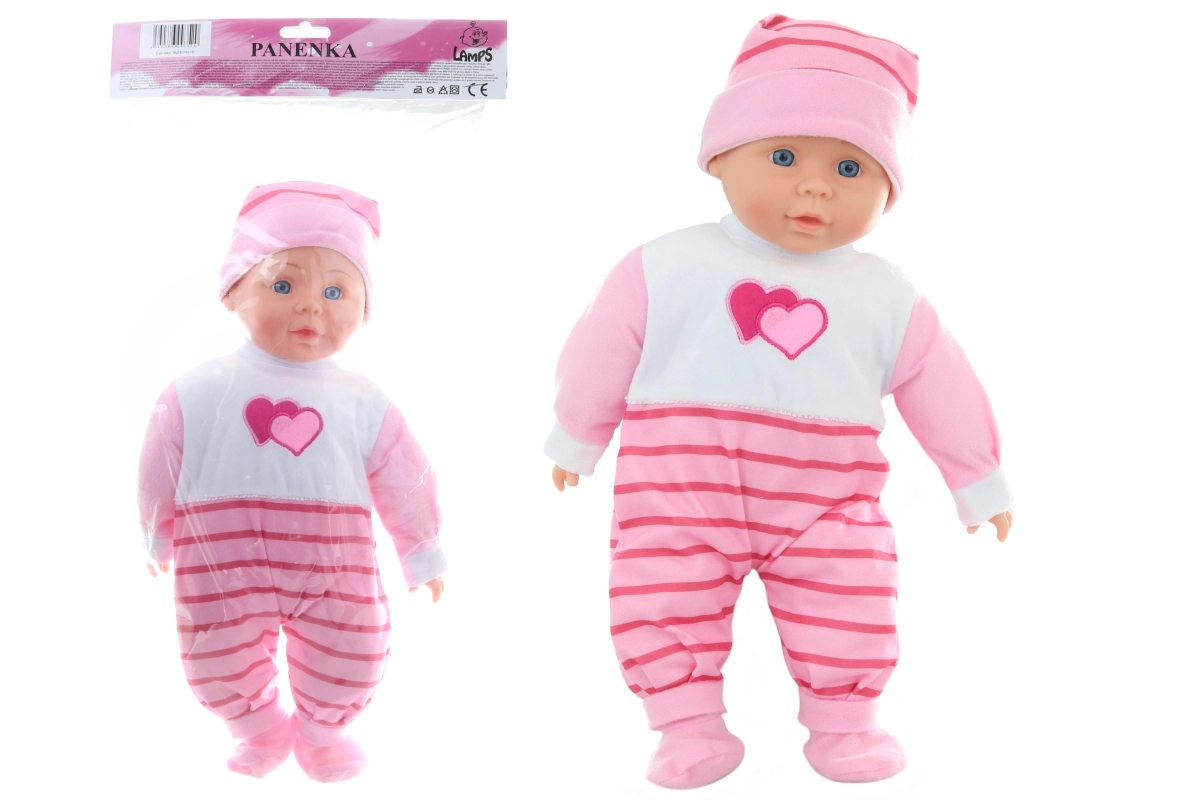 Roztomilé miminko s měkkým tělíčkem potěší každou malou maminku. Po stisknutí bříška vydává realistické zvuky, má odnímatelné pyžámko na suchý zip a je ideální pro hru na pečování. Velikost 40 cm je jako stvořená pro mazlení.