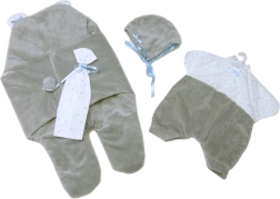 2dílný obleček pro panenku miminko včetně rychlozavinovačky do autosedačky a ozdobného kapesníčku. Ideální pro panenky o velikosti 40-42 cm.