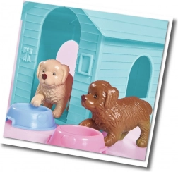 Panenka Steffi, panenka Evi, 4 zvířátka, stůl, bouda pro psa, klec pro králíka, hřiště a další doplňky