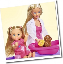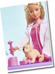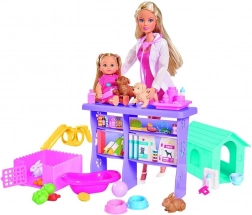 Se sadou Steffi veterinář si děti snadno zahrají na ošetřovnu pro mazlíčky. Panenka Steffi (29 cm) se společně s malou Evi (12 cm) starají o čtyři roztomilá zvířátka a používají k tomu různé doplňky, které dělají hru zábavnou i poučnou.