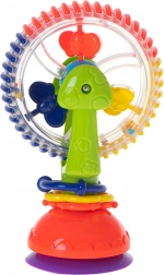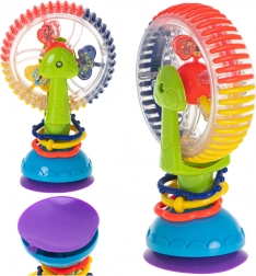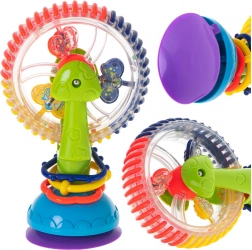 Tato interaktivní hračka pro miminka nabízí rotující prvky, kuličky s chrastícím efektem a silnou přísavku, která ji udrží na místě. Veselé barvy a točící se části přitahují pozornost a podporují soustředění i koordinaci oko–ruka.