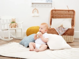 Tiché, uklidňující chrastění a kombinace měkkého plyše s hladkým dřevem podporují rozvoj smyslů a první objevování.