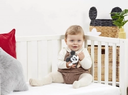 Kombinace hladkého dřeva a měkkých textilií je šetrná k dětským ručkám a nabízí bezpečné, odolné provedení pro každodenní hraní.