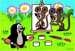 Děti si mohou užít motiv Krtečka malujícího myšku, který inspiruje k vlastní kreativitě a uměleckému vyjádření.