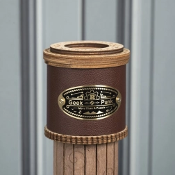 Trætubus med læderbånd og metalmærkat tilføjer modellen et vintage udseende, der pynter ethvert interiør.