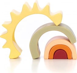 Delene kan stables, bygges og kombineres til forskellige former – fra en sol til kreative bue‑konstruktioner. Legetøjet er ideelt til læring af farver og former, og takket være den nemme vedligeholdelse kan det rengøres på et øjeblik. Et fremragende valg til både tumlinger og førskolebørn, der elsker fantasifuld og meningsfuld leg.