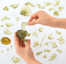 Puslespillet er lavet af farvet gennemsigtig plast, hvilket øger den æstetiske værdi og gør det til en smuk interiørdetalje.