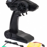 Pakken indeholder alt, hvad du skal bruge for at komme i gang: bil, fjernbetjening, genopladeligt batteri 4,8 V 700 mAh og USB-opladningskabel. Opladning tager cirka 90 minutter og giver omkring 20 minutters actionfyldt kørsel.