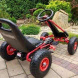 Denne pedalgokart A-15 forvandler hver tur til et racereventyr. Den robuste ramme, det sportslige design og det komfortable formede sæde med hurtig positionsjustering sikrer en perfekt siddeposition – også til børn i vækst. Kørslen lettes af automatisk friløb med mulighed for kørsel frem og tilbage samt præcis styring med sportsrat.
