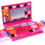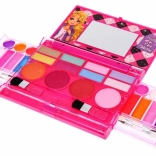 Paletten rummer mange farverige øjenskygger og læbestifter, applikatorer/børster samt et praktisk spejl. Takket være den smarte konstruktion kan den på et øjeblik foldes ud til en overskuelig arbejdsflade og efter brug nemt lukkes igen.