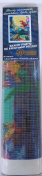 Pakken indeholder: lærred med fortrykt motiv, pen til påføring af sten, bakke til at hælde sten i, voks til påsætning, sæt farvede sten.