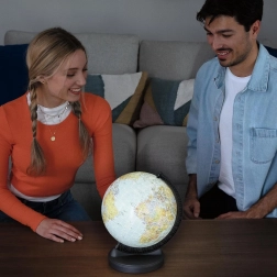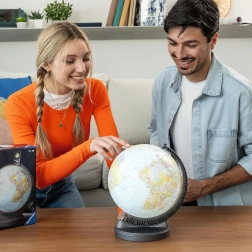 Det integrerede LED‑modul oplyser kontinenter og lande, så globussen er perfekt til aftenbetragtning og som stilfuld dekoration på børneværelset eller i stuen.