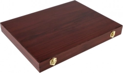 Opdag komplet kunstudstyr, ideel til både små og store kunstnere. Dette praktiske sæt i en elegant trækuffert tilbyder alt nødvendigt til maleri og tegning, inklusive farveblyanter, blyantspidser, viskelæder og vandfarver, i alt 91 dele.