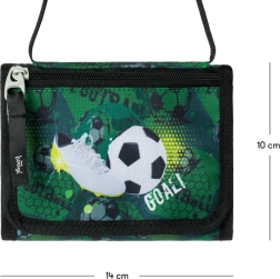 Denne BAAGL hals-pung med fodbolddesign er et fremragende valg til sikker opbevaring af lommepenge, småting og ID-kort. Takket være det holdbare materiale og den pålidelige velcrolukning bliver indholdet, hvor det skal, selv ved daglig brug.