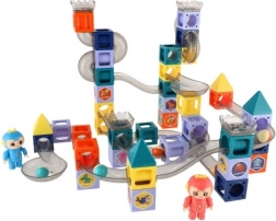 Forskellige blokke, ramper og tilbehør gør det muligt at sammensætte nye kuglebaner igen og igen. Børn udforsker tyngdekraft og fart på en sjov måde.
