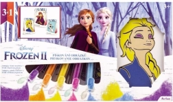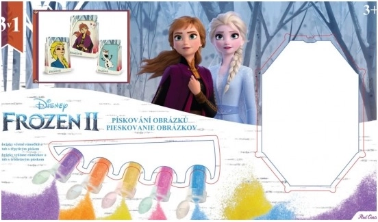 Dette sæt til sandbilleder med motiver fra filmen Frost II er designet for at give børn en sjov og kreativ aktivitet. Ved hjælp af tre skabeloner til sandbilleder og 16 tuber med farvet glitrende sand kan børn lave deres helt egne glitrende billeder. Når sandbilledet er færdigt, kan det placeres i den medfølgende emballage og dekorative ramme som en smuk dekoration til børneværelset.