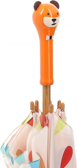 Det lakerede træhåndtag formet som en bjørn ligger godt i hånden og forvandler hver regnbyge til sjov.