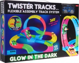 Denne store lysende racerbane er velegnet til børn fra 3 år. Den er fluorescerende og lyser smukt i mørke, hvilket sammen med bilens LED-belysning skaber fantastiske effekter. Den nemme montering og enkle betjening gør den til et glimrende supplement til enhver leg.