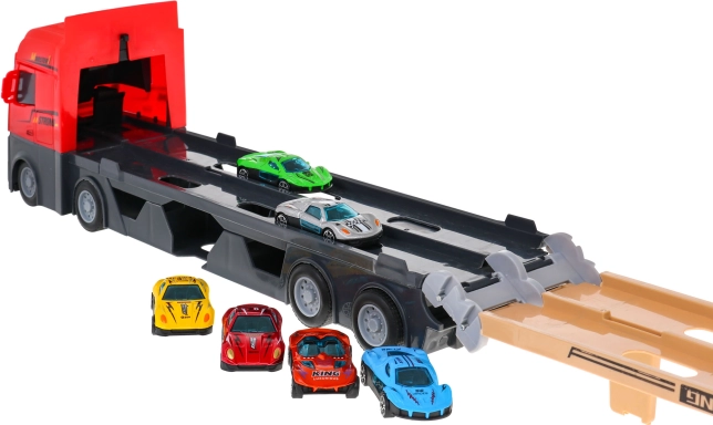 Når den foldes ud, bliver lastbilen til en lang tosporet racerbane, ideel til bildueller og udvikling af fantasien.