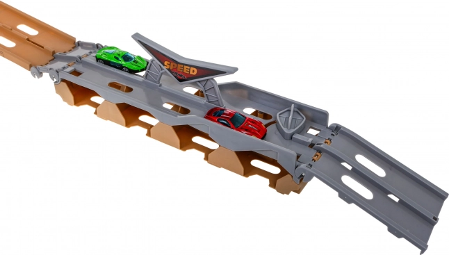 - Katapult, tre-niveaus opbevaring, udfoldelig racerbane, tohjulstræk
