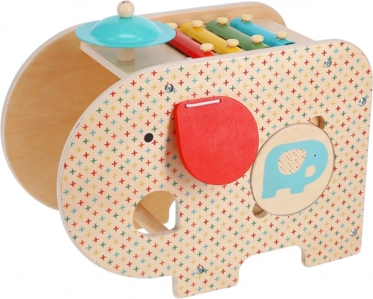 Elefanten tilbyder fem musikinstrumenter i ét: xylofon, tromme, bækken og flere til udvikling af kreativ musikalsk udfoldelse.