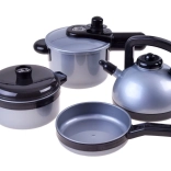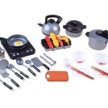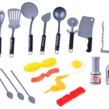 Indeholder alt, hvad der er nødvendigt for sjov madlavningsleg, inklusive service, madvarer og køkkenredskaber lavet af sikker plast.
