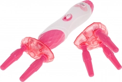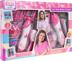 Det smukt udstyrede 2-i-1 sæt til fletning af fletninger og påføring af perler er beregnet til børn fra 5 år. Sættet indeholder to hårstyling-enheder. Der er en maskine til at flette hår og en maskine til at påføre perler i håret, samt en hårbørste, perler, hårspænder og elastikker. Fletteapparatet drives af 2 AA 1,5 V batterier (medfølger ikke), og perleapplikatoren kræver ingen batterier. Brug af enhederne er meget enkelt. For at flette fletninger skal du blot indsætte 2 hårtotter, og ved fletninger 3 totter, i hullerne i klemmerne og skubbe diamantknappen opad. For at påføre en perle i håret skal du blot sætte perlen på applikatoren, derefter indsætte en hårtot i krogen på applikatoren og skubbe diamantknappen i midten af enheden opad. Hold perlen og fjern applikatoren. Færdig! |