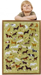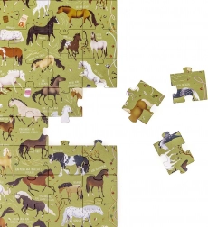En vidunderlig, eventyrlig oplevelse for hesteelskere! Det store puslespil med 60 brikker, der viser forskellige heste, opfylder drømmen for den lille rytter og er en fantastisk gave til børn.