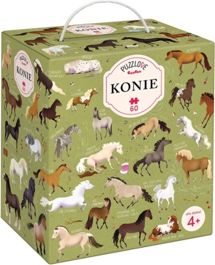 Tag på hestegalop med Puzzlove-puslespillet og udforsk de mange hesteracer og deres unikke farver. Denne attraktive puslesamling er ideel til unge entusiaster af livet i stalden, som søger nye udfordringer. Puslespil inspirerer til udvikling og opmuntrer til at udvide viden, træner tålmodighed og koncentration.